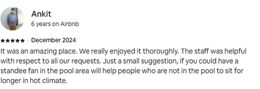 - The entire villa cleaning is done every day and linen changed every alternate day.